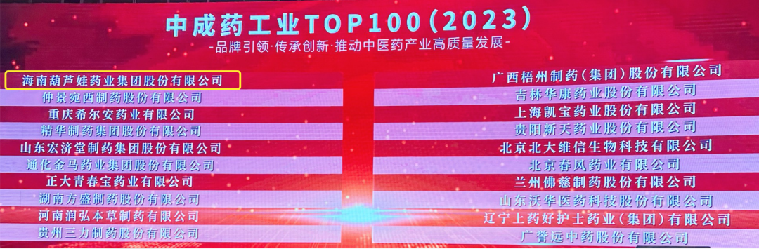 会上,还发布了“2023中成药工业TOP100”榜单,菠菜导航药业集团荣耀上榜。